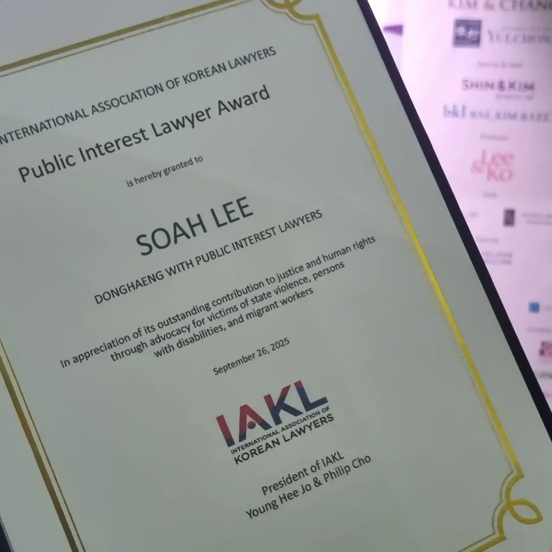 지난 9월 26일, 또니는 제32차 세계한인법률가회(IAKL) 연차총회에서 프로보노(공익변호사)상을 수상하였습니다! 연대가 절실하지만, 쉽사리 그 문턱을 넘기 어려웠던 지역 내 당사자들의 든든한 동료가 되어준 또니에게 축하의 박수를 보냅니다. 함께 축하해 주세요!